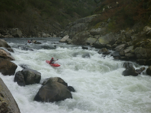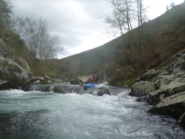 Am nächsten Tag stand ein weiterer Genussbach an: der Teixeira. Wassertechnisch auch wieder ein Traum, und natürlich, wie sollte es in Portugal anders sein, alles im Drop&Pool-Stil. Stromschnellen im dritten und vierten Schwierigkeitsgrad, und danach wieder absolutes Flachwasser für 20 Meter - solches Wildwasser kennt man von den Alpen nicht. Schade nur, dass der unterer Teil dieses Flusses vor dem Zusammenfluss mit dem Vouga bald nicht mehr fahrbar sein wird, die kleine Schlucht mit Sôca-Charakter am Ende wird in einem Wasserkraftwerk ertrinken. Und mit 100 Paddlern insgesamt ist die portugiesische Paddlergemeinschaft bei weitem nicht einflussreich genug, um dies zu verhindern.