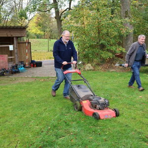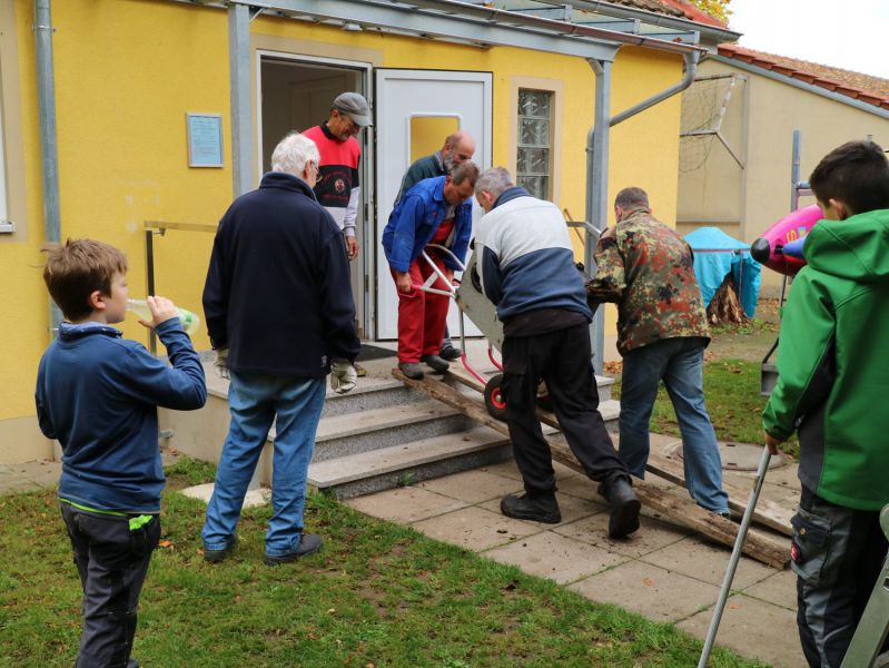 Überraschend zahlreich war die Menge der Helfer die sich wieder eingefunden hatte, um die anfallenden Arbeiten auszuführen. Es war nicht die Aussicht auf einen kostenlosen LKW (Leber-Käs-Weck) in der Mittagspause. Nein, es war der Teamgeist der uns packte. Zum Glück war reichlich Arbeit vorhanden (wie immer), so dass sich jeder verwirklichen konnte, um dann am späten Nachmittag mit einer gewissen Müdigkeit nach Hause gehen konnte.