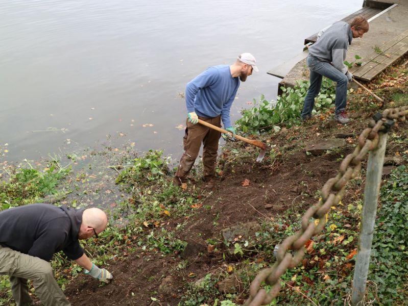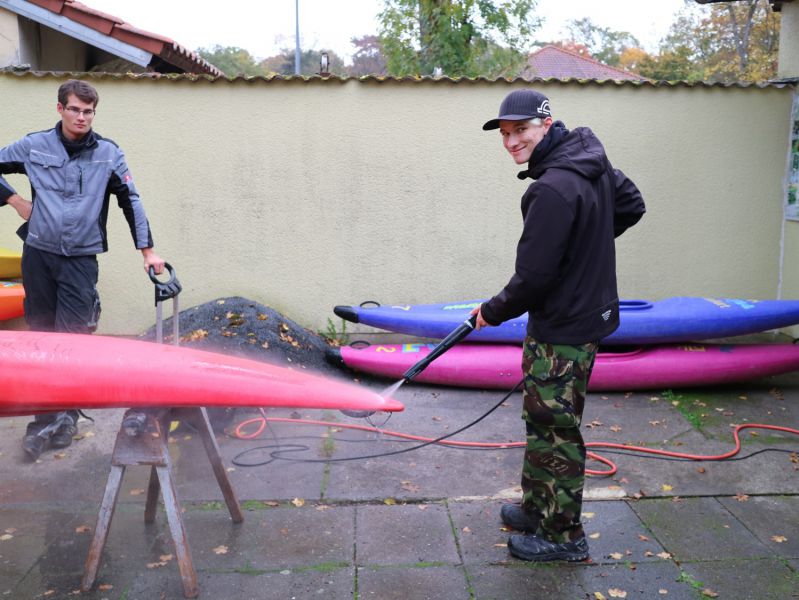 Es galt das viele Laub der Bäume zu entfernen, die Uferböschung zu bearbeiten, die Bootslager zu säubern, das Bootshaus zu reinigen (Küche, Kühlschränke, Trainingsraum und Toiletten .