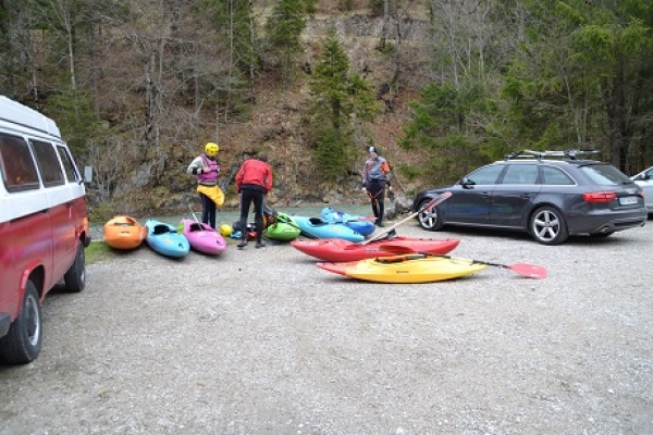 Wir fuhren am Karfreitag früh am Morgen los und erreichten daher am Mittag unser Ziel. Dort stärkten wir uns und fuhren dann los. An jenem Tag war es sehr kalt und regnerisch, daher konnte ich die Fahrt auf dem Flussteil, der nicht sehr schwierige war, nicht genießen. Ich denke, dass alle sich freuten als wir am Campingplatz waren. Wir hatten eine Hütte aus der unser Gemeinschaftsraum wurde. Am Samstag frühstückten wir ausgiebig und machten uns dann auf den Weg. Einer von unserer Gruppe blieb auf dem Campingplatz zurück um sich auszuruhen. Auch dieses Wildwasser war nicht schwierig, obwohl anzumerken ist das ich bei dieser Fahrt 4-mal ins Wasser fiel, was die anderen, die mir toll geholfen hatten auf Trab hielt, wie mich nicht um die Gute Laune brachte. Am nächsten Tag blieb ich am C. um mich von der, doch recht anstrengenden Fahrt zu erholen. Mein Bruder berichtete mir, dass sie bis zu 1m hohe Wellen hatten. Am letzten Tag konnte ich leider wegen einer Verletzung am Fuß nicht mitfahren, so verbrachte ich die Zeit damit sie zu fotografieren. Unser Essen war immer ausreichend und sehr gut. Mein einziges Mängel wäre die Frage wie und vor allem wo sie ohne Hütte gegessen ... hätten (da wir am ersten Abend Schneetreiben hatten). Ich fand das Wochenende alles in allem sehr gut und war stolz in so einer netten Gruppe dabei zu sein.