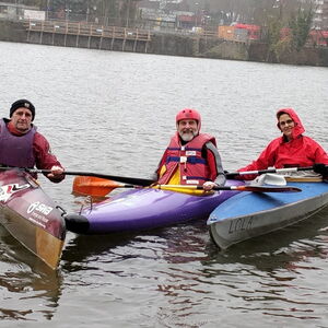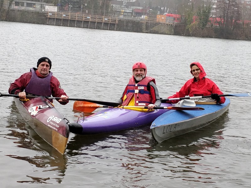 Am ersten Tag des neuen Jahrs ist es üblich, dass einige Ungeduldige schon mal das Paddeln starten. Nachdem es aber diesmal recht frisch und ungemütlich auf dem Main war, haben sich nur drei Paddler dazu entschlossen. Dabei war Harald, der trainiert bei jedem Wetter ganzjährig für die Wildwasser-Rennen, außer der Main ist gefroren oder hat Treibeis.