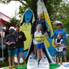 Das Sirene-Rennen: Der Padder ist nicht alleine auf seinem Brett sonder hat eine Sirene oder wie im Schiffscharong Gallionsfigur genannt mit an Board. Wenn diese Person unterer 14 Jahren alt war nahm sie automatisch an der Verlosung eines Kinder-SUPs teil.