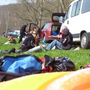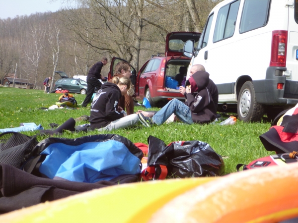 Arg übermüdet kamen wir um 10.00 Uhr morgens in Plauen an unserer Einstiegsstelle an der Weißen Elster an. Aber jede Müdigkeit wich der Aufregung und spannenden Erwartung als wir begannen die Boote abzuladen und das Material zu sortieren. Eine Inspektion des Flusses zeigte einen ordentlichen Wasserstand und wir konnten es kaum erwarten endlich loszufahren. Kurz vor dem Start zeigte sich die Sonne und es wurde richtiggehend heiß.